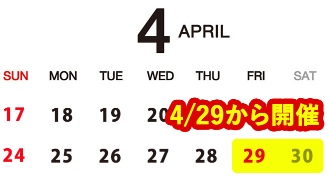 ※5/4、5/7開催のイベントは取扱商品が一部異なります。